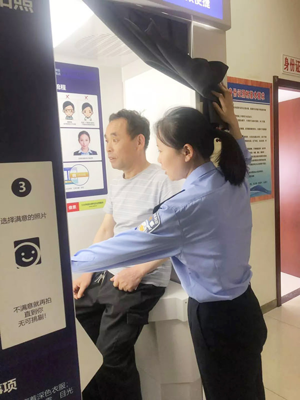 近日,在合阳县公安局党委的支持下,一台崭新的居民身份证自助拍照一体机“亮相”合阳县政务服务中心,全程办理身份证仅需3-4分钟,大大缩短了群众排队等候的时间。